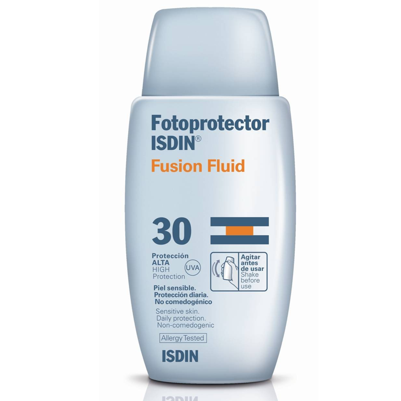 El Fotoprotector ISDIN Fusion Fluid SPF 30 es un fotoprotector fluido de comportamiento tixotrópico. Gracias a su tecnología Fusion Fluid, se funde con la piel y aumenta la fluidez del producto al momento de aplicarlo, permitiendo una fácil extensión y acelerando su absorción. La combinación de emolientes, viscosizantes y siliconas proporciona luminosidad a la piel y un acabado uniforme y mate, evitando los brillos y la sensación de piel grasa, además de difuminar las imperfecciones. Gracias a su formulación, que incluye ácido hialurónico y vitamina E con efecto antioxidante, su aplicación mejora la elasticidad de la piel y ayuda a prevenir el fotoenvejecimiento, manteniendo la piel fresca y luminosa. Proporciona una protección media invisible de uso diario para todo tipo de pieles.