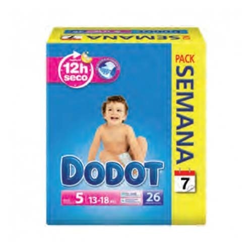 El Dodot No. 5 (13-18 kg) 26 unidades es una solución básica y práctica para absorber completamente el líquido del bebé. Estos pañales tienen un sistema de transpiración eficaz que mantiene la piel de las nalgas del bebé seca y cómoda. También cuentan con micro perlas absorbentes que envuelven la orina y poseen una gran capacidad de absorción. Además, tienen una capa de secado muy rápido, lo que reduce el tiempo de contacto de la piel con la orina.