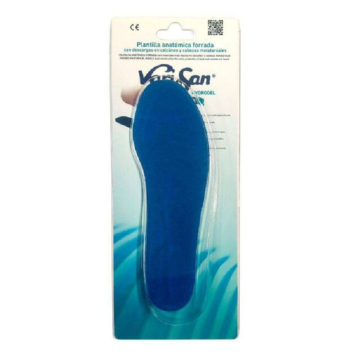 La Plantilla Hydrogel Varisan Anatómica Forrada Talla 43/44 está diseñada para favorecer el alivio del dolor en los pies fatigados. Esta solución cómoda y sencilla es ideal para la planta del pie, permitiendo calmar las molestias causadas por el cansancio. Ha sido especialmente forrada para proporcionar apoyo a pies de riesgo, como los de personas diabéticas y geriátricas. Debe colocarse en el zapato, asegurándose de que se ajusta perfectamente. Al usarla, se experimentará un merecido descanso en los pies y una agradable sensación de confort, evitando sobrepresiones. Además, previene la aparición de metatarsalgias, durezas y callosidades.