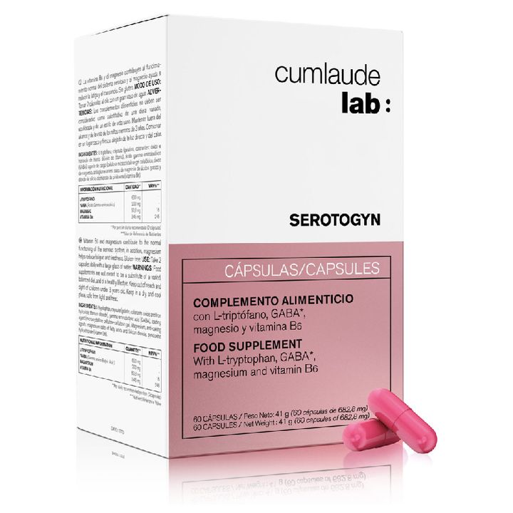 Complemento alimenticio para mujeres con menopausia indicado para evitar los sofocos y otros trastornos asociados. Cumlaude Serotogyn 60 cápsulas ayuda contra la menopausia. La llegada de la menopausia es un momento que aterra a la mayoría de las mujeres por el cambio drástico que supone. Con ella suelen llegar los sofocos, la irritabilidad, el cansancio y el desgaste de los huesos. Para esto, Rilastil ha creado estas cápsulas. Este producto evita el desgaste debido a la actividad física, el trabajo o incluso la vida social, al mismo tiempo que ayuda a que las defensas del organismo no bajen y combate sofocos, trastornos de sueño o sudoraciones.